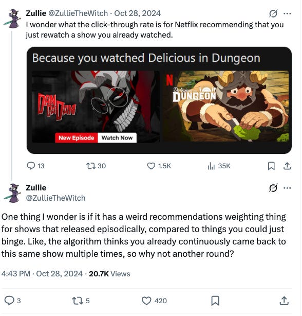 Netflix wants you to watch Stranger Things instead of Seinfeld. One of those is their IP that they own outright. The other costs them licensing fees. Guess which one shows up more prominently in your recommendations?