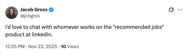 If you tried to create three more incoherent job recommendations for someone, you’d be hard-pressed to come up with this gem. How is it possible that LinkedIn … owned by Microsoft and has free access to all the OpenAI models, with its superstar engineers and massive data troves, came up with this?