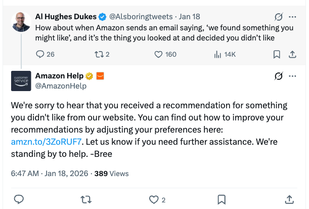 Amazon wants you to buy Amazon Basics products. LinkedIn wants you to engage with LinkedIn Learning. The recommendation engine doesn’t purely exist to serve you. It’s trying to serve the company’s other business objectives.