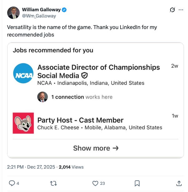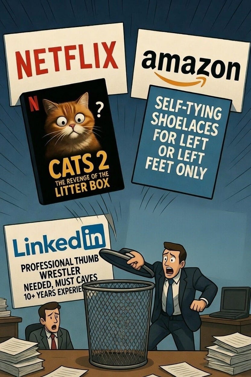 Yet somehow, with all this data and all this AI, they can’t figure out that someone shouldn’t be recommended three diametrically opposed jobs in the same breath.